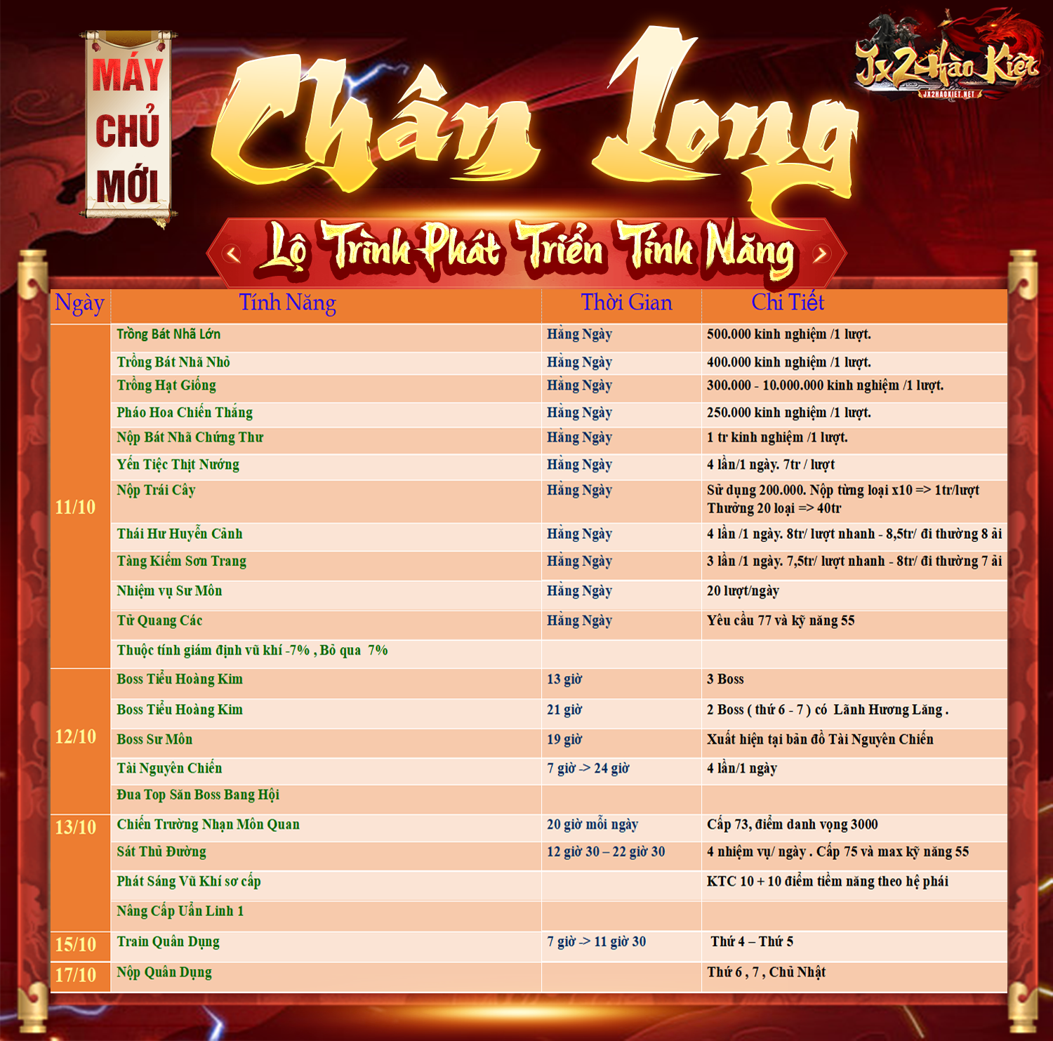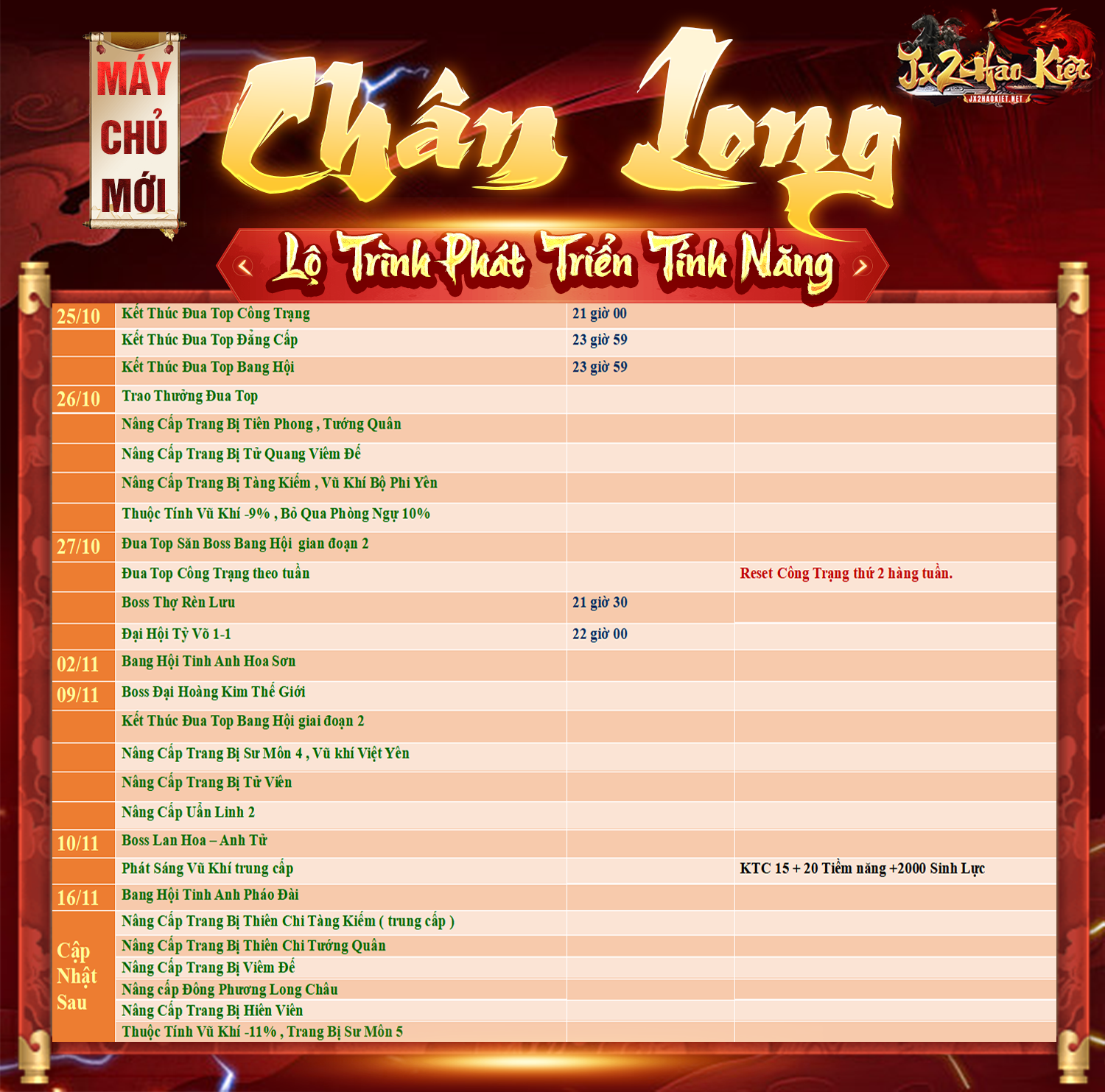 Lưu Ý: đây là lộ trình dự kiến cơ bản, lộ trình có thể thay đổi dựa vào tình hình chung của sever.